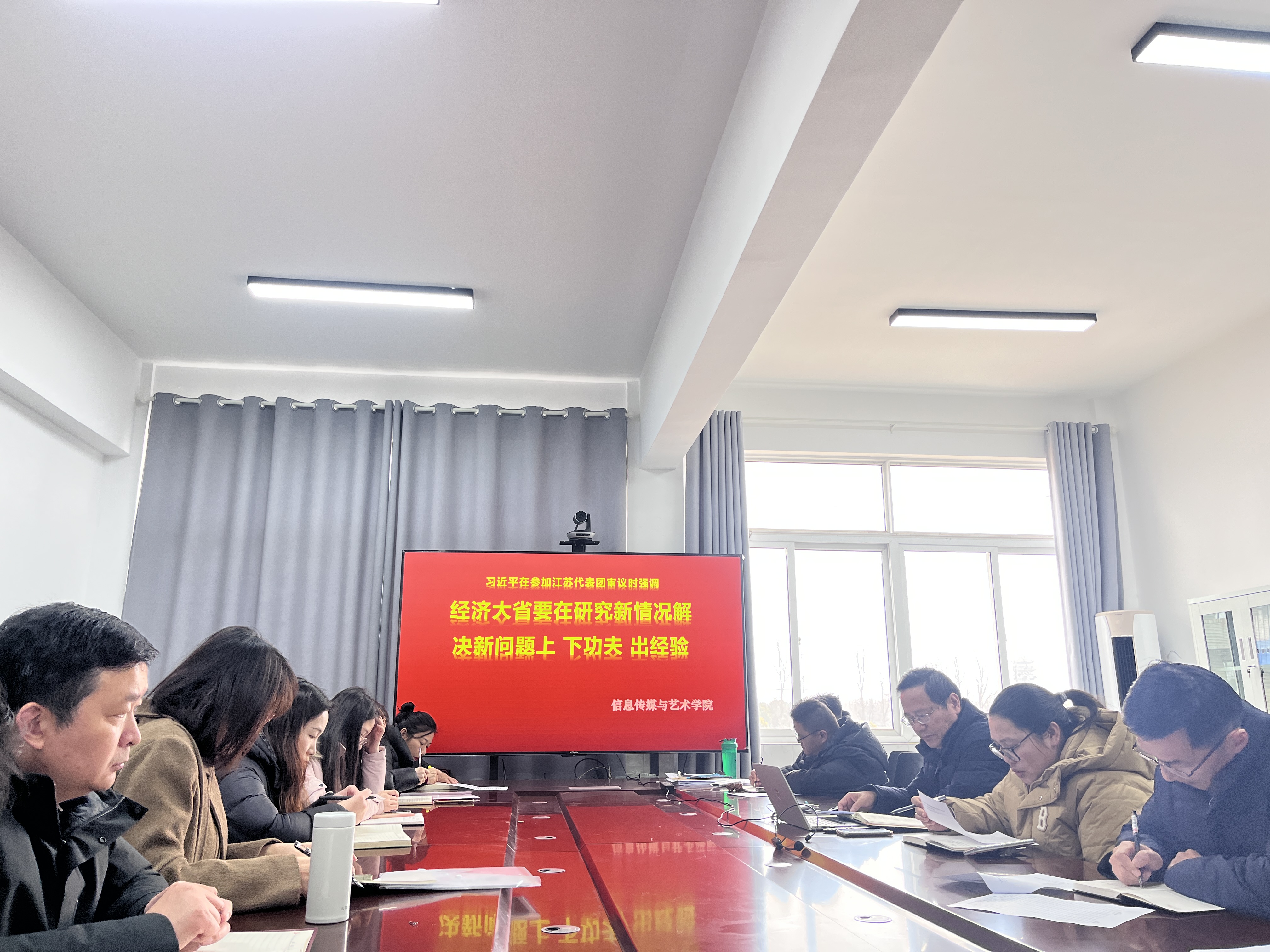 信息传媒与艺术学院组织开展本学期第十三周政治学习会议,全院师生代表参会,会议首先传达学习教育部思
